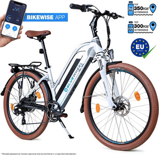 Met de Bluewheel 26'' E-bike 7 Shimano versnellingen Li-ion accu BXB85 ben je altijd verzekerd van een soepele en comfortabele rit. Dankzij de 7 Shimano versnellingen kun je moeiteloos schakelen en elke heuvel beklimmen. De krachtige Li-ion accu zorgt ervoor dat je langdurig kunt genieten van je rit zonder je zorgen te hoeven maken over de batterijduur. Daarnaast is deze e-bike uitgerust met een handige app waarmee je extra functies kunt bedienen, zoals het regelen van de ondersteuningsniveaus en het bijhouden van je prestaties. Met de Bluewheel 26'' E-bike haal je niet alleen een stijlvolle en moderne fiets in huis, maar ook een betrouwbare metgezel voor al je avonturen op de weg.
