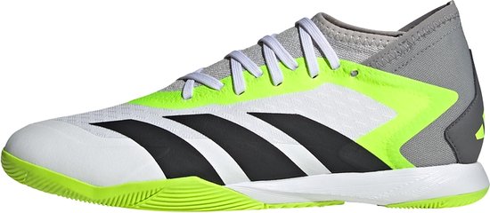 De adidas Performance Predator Accuracy.3 Indoor Voetbalschoenen zijn ontworpen voor diegenen die graag de bal in het net laten belanden. Of je nu de bal in de kruising wilt plaatsen of hem in de linkerhoek wilt schieten, met deze schoenen ben je verzekerd van precisie en controle. Het ademende mesh materiaal in de voorvoet zorgt voor ventilatie, terwijl de stevige neuskap je beschermt tegen slijtage tijdens intensieve wedstrijden. De rubberen loopzool is speciaal ontworpen voor zaalvloeren, waardoor je grip en stabiliteit behoudt terwijl je de tegenstander te slim af bent. Naast de technische kenmerken van deze voetbalschoenen, is het ook goed om te weten dat het bovenwerk voor minstens 50% bestaat uit gerecyclede materialen. Zo draag je niet alleen bij aan je prestaties op het veld, maar ook aan een duurzamere toekomst. De normale pasvorm en vetersluiting zorgen voor een comfortabele en stevige pasvorm, terwijl de voering van textiel zorgt voor extra comfort. Met de adidas Performance Predator Accuracy.3 Indoor Voetbalschoenen ben je klaar om te schitteren op het veld en tegelijkertijd bij te dragen aan een schonere planeet.