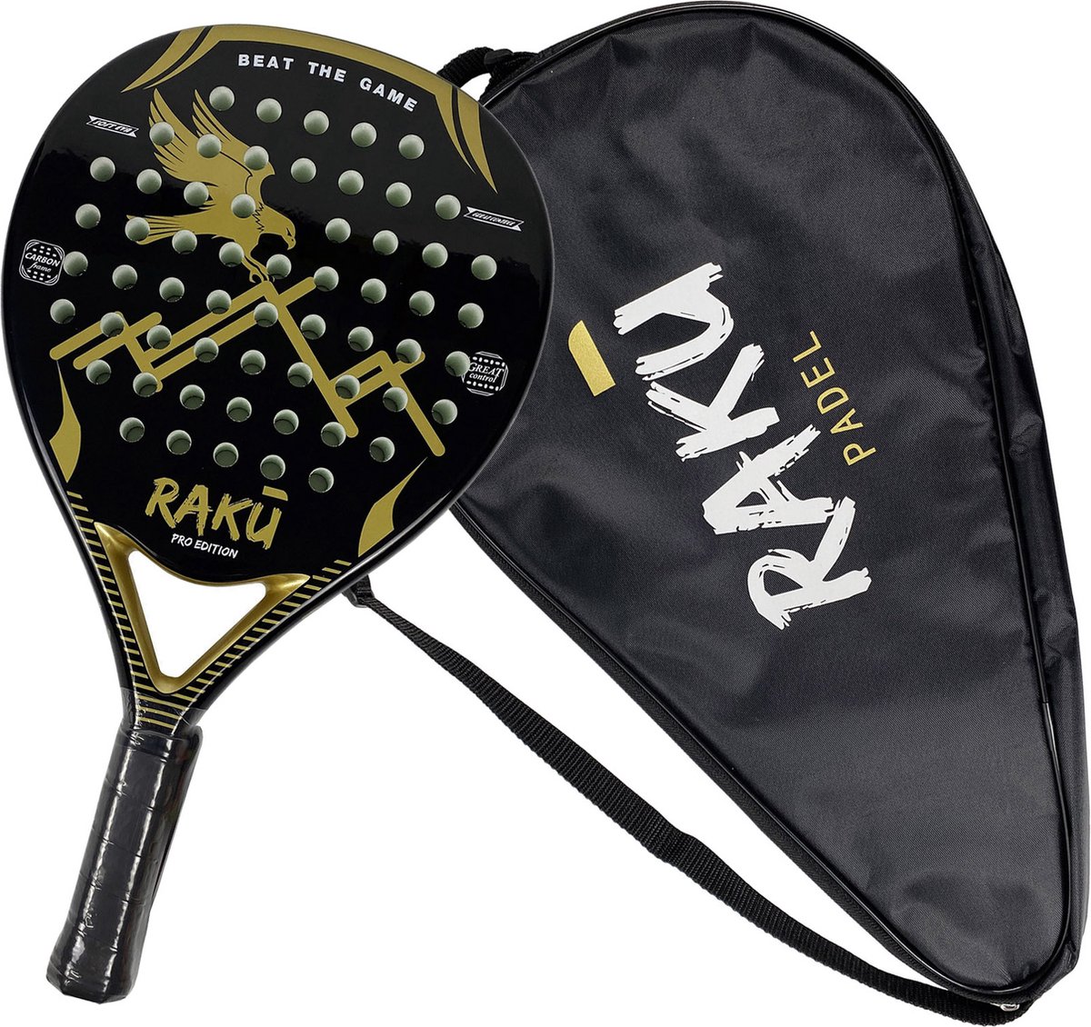 De Eagle Raku® Padel Racket is een hoogwaardig, professioneel padel racket dat ontworpen is voor de veeleisende speler. Het is gemaakt van hoogwaardig carbon waardoor het een zeer sterk frame heeft. De Eagle Raku® Padel Racket heeft ook een unieke verdeling van gewicht voor een perfecte balans tijdens het spelen. Het frame is licht en heeft een ergonomische grip die perfect in de hand ligt. Het racket wordt geleverd met een stevige padelzak met een slim ontworpen dubbele rits en een verstelbare schouderband. Hiermee is het gemakkelijk om het racket te dragen en te vervoeren. De Eagle Raku® Padel Racket is ideaal voor spelers die op zoek zijn naar een optimale prestatie en veel controle in hun spel. Door de verschillende technologieën zoals de X-grip en het verdeelde gewicht krijg je een perfecte mix tussen kracht en controle. Geniet van een extreem goede balcontrole en een verbluffende responsiviteit waarmee je je tegenstander alle kanten op kan sturen. Met de Eagle Raku® Padel Racket krijg je het ideale padel racket waarmee je je tegenstander de baas kan zijn. Ontdek de perfecte balans van kracht en controle en ver.