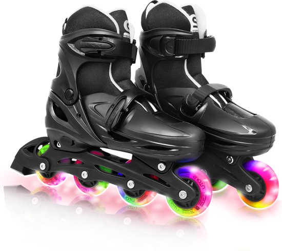 De inline skates zijn voorzien van lichtgevende wielen, waardoor je ook in het donker goed zichtbaar bent en extra opvalt. De wielen hebben een diameter van 70 mm en zijn gemaakt van duurzaam PU-materiaal, waardoor ze soepel rollen en lang meegaan. Daarnaast zorgen de ABEC-7 lagers voor een soepele en snelle rit. Het frame van de skates is gemaakt van stevig aluminium, wat zorgt voor stabiliteit en duurzaamheid. De skates zijn geschikt voor kinderen met schoenmaat 34-37 en kunnen eenvoudig worden versteld met de drukknop aan de voorkant van de schoen. Met deze inline skates kunnen kinderen veilig en comfortabel genieten van urenlange skateplezier, zowel binnen als buiten.